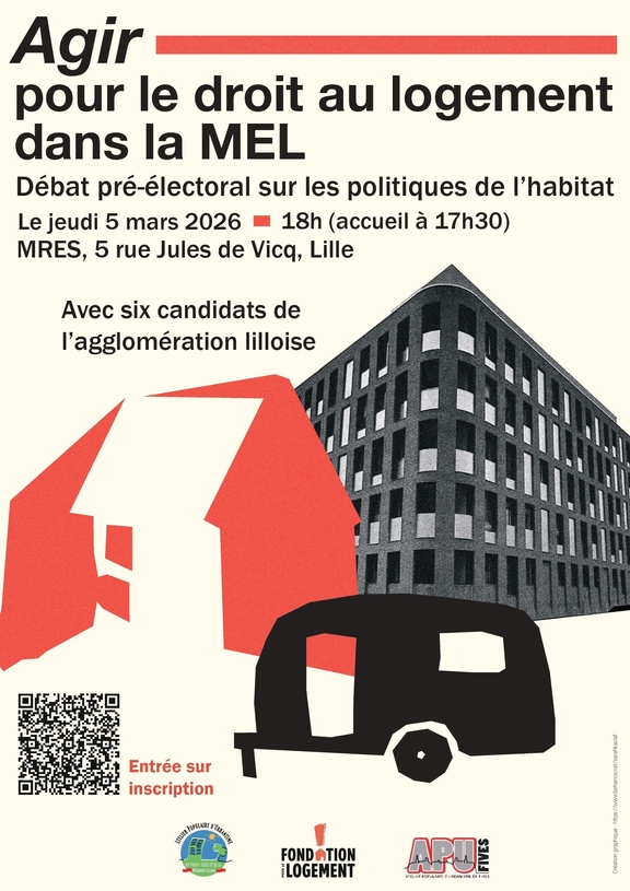Dans la perspective des élections municipales, six candidat-es de différentes villes de l'agglomération lilloise représentant les principales forces politiques locales et nationales seront invité-es à réagir aux constats locaux sur l'état du mal-logement et à débattre des propositions pour améliorer les conditions de logement des habitants-es de la métropole.
