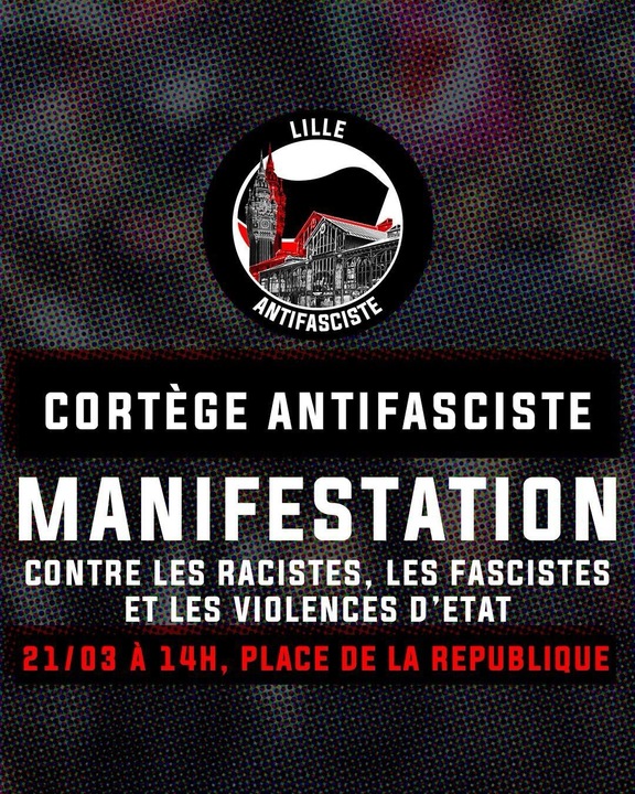Rejoignez le cortège antifasciste autonome le samedi 21 mars 2026 à 14h00, Place de la République à Lille.