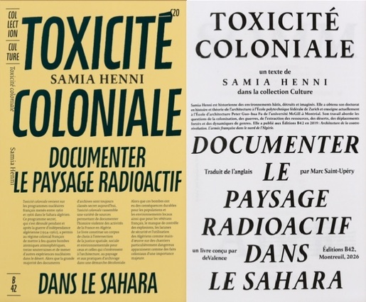 L'Atelier d'histoire critique et Survie Nord vous invitent à une rencontre avec Samia Henni, historienne des environnements bâtis, détruits et imaginés et autrice de TOXICITÉ COLONIALE, DOCUMENTER LE PAYSAGE RADIOACTIF DANS LE SAHARA, Éditions B42, (mars 2026).